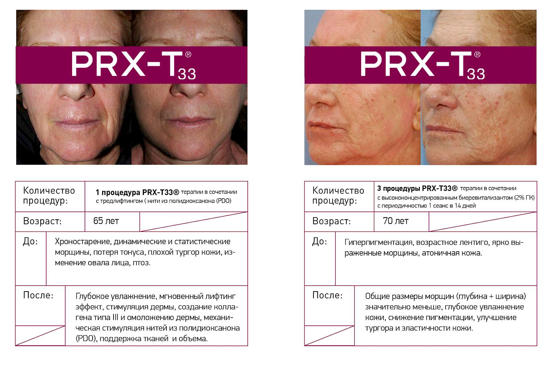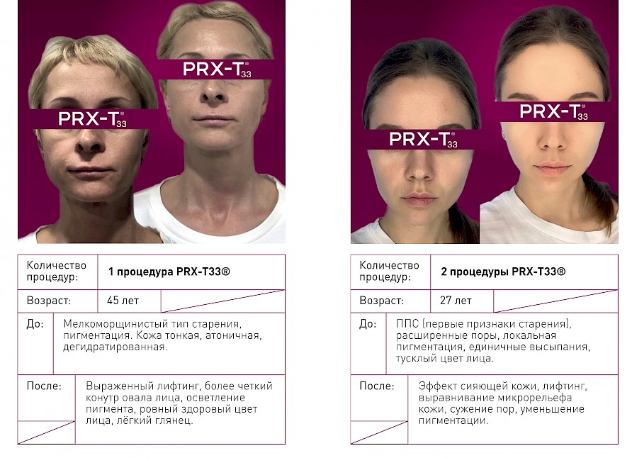 PRX-T33® - это новое качество кожи и безграничные возможности применения: от процедуры для лица «на выход» до мощнейшей стимуляции дермы в сочетании с аппаратными и инъекционным методиками.
