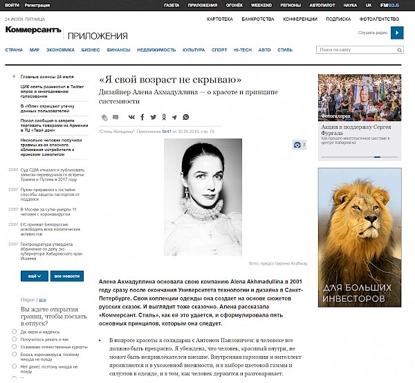 «Я свой возраст не скрываю». Дизайнер Алена Ахмадуллина — о красоте и принципе системности.